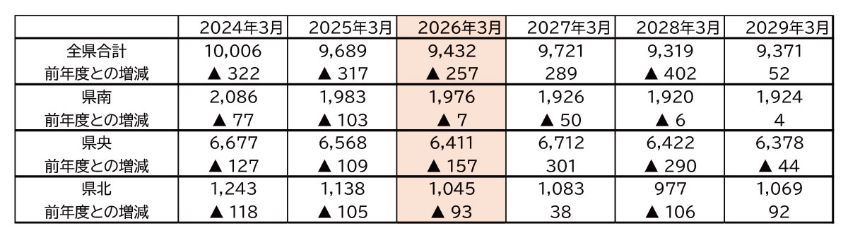 2027年度(R9)では県央地区で301人の増加