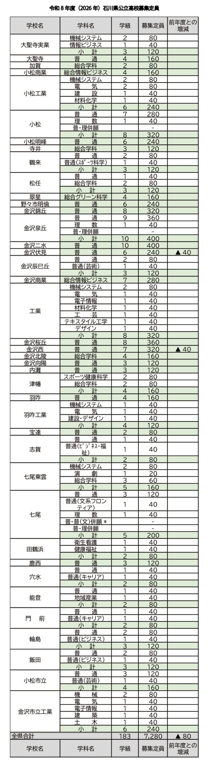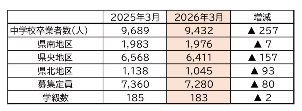 【2026高校受験】R8年度石川県公立高校入学者定員