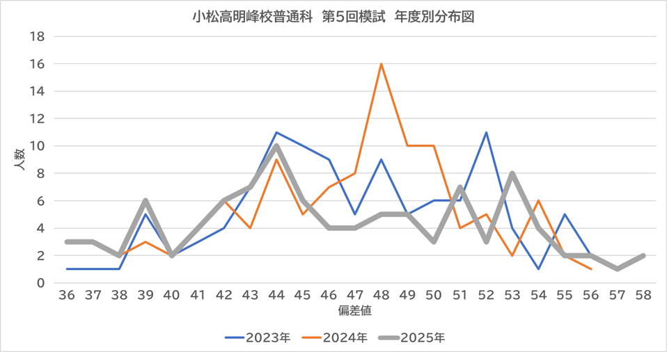 - 2025年度:第5回総合模試受験者小松明峰高校普通科占有率0.0296 → 倍率 0.95