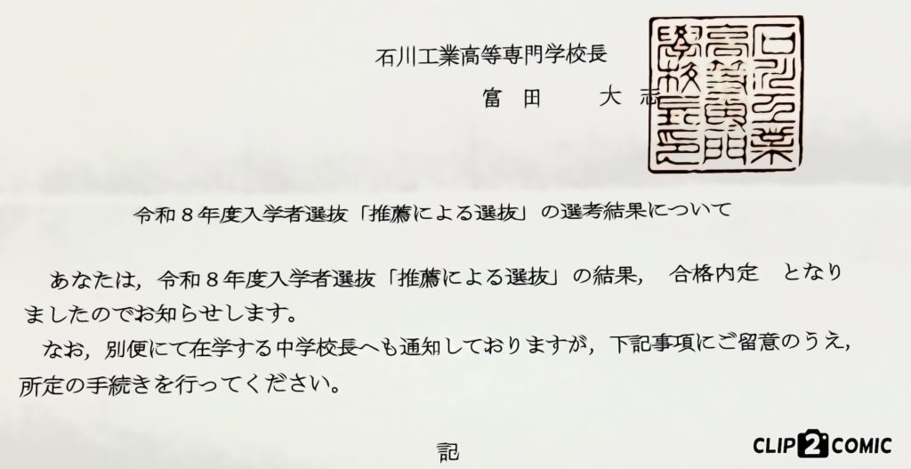石川高専合格発表