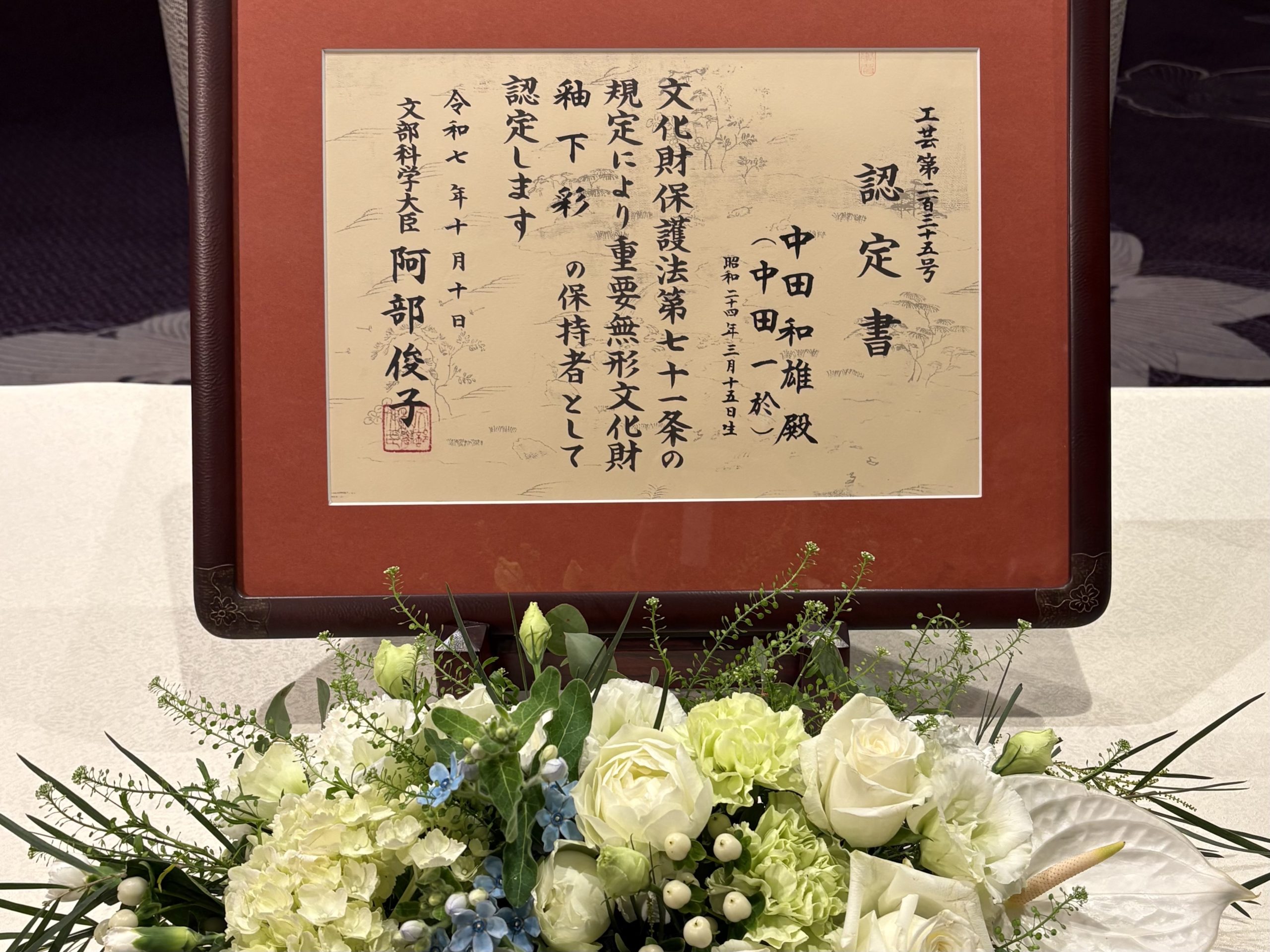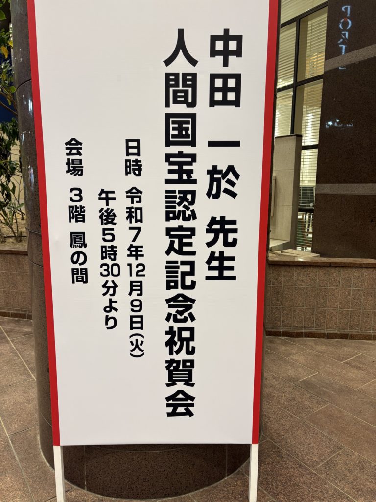 火曜日は中田一於さんの人間国宝認定記念祝賀会に参加