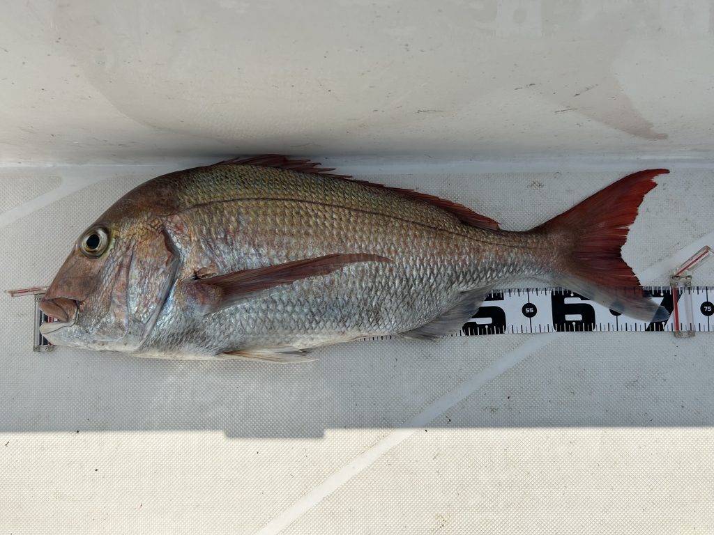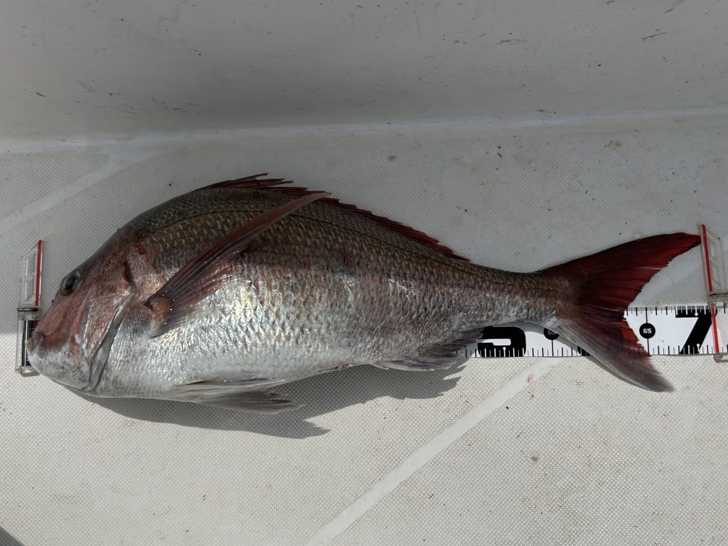 秋の鯛と比べると美味しくはないのだけど、大鯛と言われる70㎝以上の大型が割と簡単に釣れてしまう。