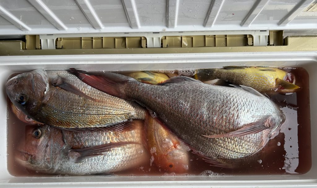 サイズがサイズだけに80リットルのクーラーボックスでも、すぐにほぼ満タンになってしまう