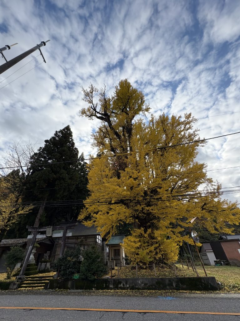 お店近くの大イチョウが秋空に映えてて超キレイ